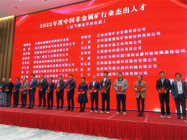 憑借在非金屬除雜提純方面的出色貢獻,隆基得到了主辦方的高度肯定,榮獲“2022年度中國非金屬礦行業(yè)優(yōu)秀設備企業(yè)”;隆基非金屬領域資深工程師牟小巖、李玉龍榮獲“2022年度中國非金屬礦行業(yè)杰出人才”稱號。